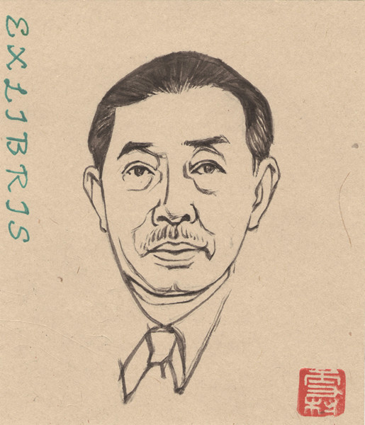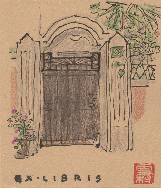 为自藏1996年7月4日参加纪念茅盾诞辰100周年大会所得《茅盾》画传作藏书票,图得自2020年10月7日上海山阴路大陆新村茅盾旧居写生,罗雪村作