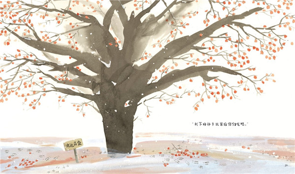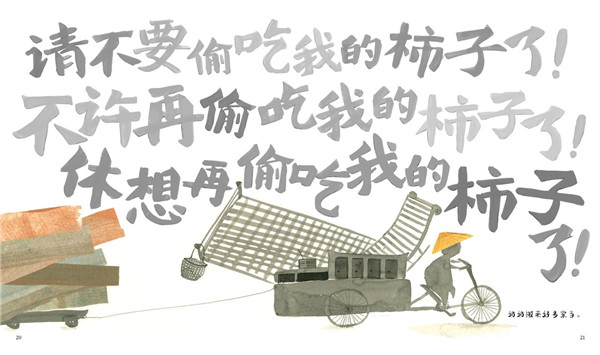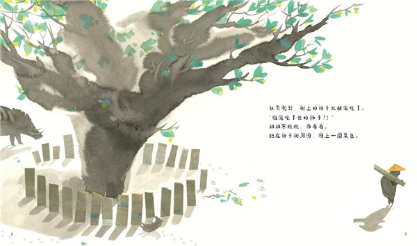 《谁偷吃了我的柿子》入选2020年度榜单的颁奖词:这是一本有着鲜明中国风格的图画书。作者将儿时的味道藏在记忆里,讲述了一位奶奶千方百计守护柿子的故事。作品塑造了如孩子般执着、纯粹的奶奶形象,让读者从故事中感受守护与分享的意义。绘画采用中国古典水墨画法,叠加真实的布料、毛线、剪纸等素材,将传统技法和现代艺术相融合,为一个个单纯而又带有乡愁气息的画面注入丰盈的生命力。