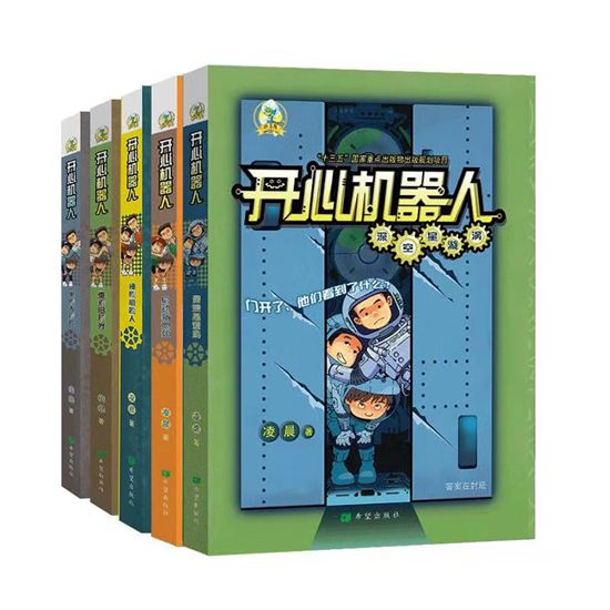 《开心机器人》系列共五册,历时五年创作完成,以“人工智能与创新科技”为主题,是一套专为数字时代的中国孩子们打造的、极富想象力和知识性的少儿科幻小说。小说讲述三个性格迥异的五年级男生和他们组装的板砖机器人“开心”结成团队,一起冒险。在穿越时空900多年的冒险中,男生们不断解锁“开心”的新功能,也不断发现自己的新能力,最终,男孩子们用科学、创新的思维解决了人类危机,改变了“开心”和人类的命运。