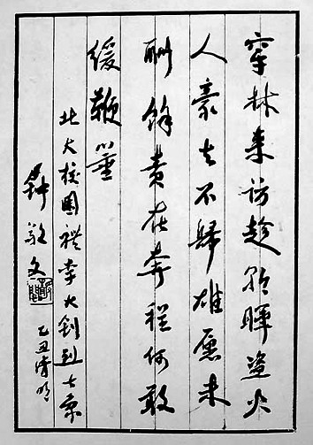 钟敬文手书诗作