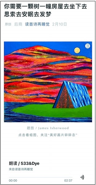 晚上10点微信公号读诗,如同曾经流行的午夜电台所起到的功用一样,试图给出一种温柔平滑的夜之抚慰