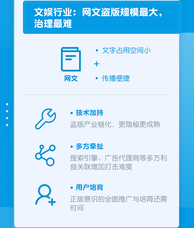 “盗版损失规模大约占网络文学行业总产值的1/4,这说明凤凰彩票打击盗版的效果不够理想。”陈崎嵘说,“凤凰彩票对网络文学的已知,跟不上盗版方式的未知。技术在进步,盗版形式会越来越多样化。”在他看来,广告联盟是盗版的罪魁祸首之一。长期以来,盗版平台积累了大量流量,平台广告变现依赖搜索引擎、广告代理商等利益相关方,多方间的利益输送增加了维权难度。