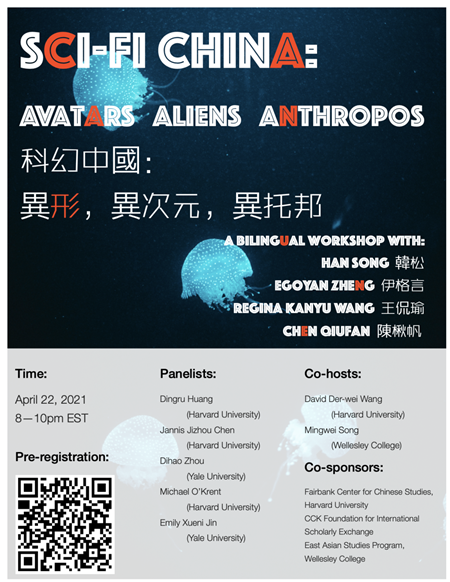 2021年4月23日,由哈佛大学费正清中国研究中心和韦尔斯利学院东亚研究系联合推出的科幻中国工作坊在线上成功举行。本次工作坊主题为“科幻中国:异形,异次元,异托邦”,由哈佛大学的王德威教授和韦尔斯利学院的宋明炜副教授主持,邀请韩松、陈楸帆、伊格言和王侃瑜等四位科幻作家及黄丁如、周迪灝、陈济舟、欧慕康(Michael O'Krent)和金雪妮等五位青年科幻学者参加,围绕主题进行发言和讨论。共有两百余名观众参与本次活动。