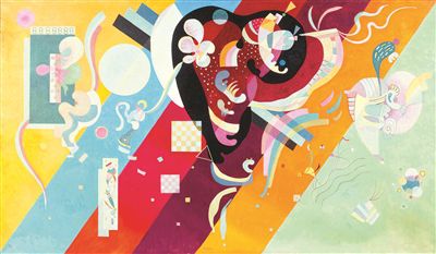 你会发现,康定斯基很多作品的名字以音乐术语命名,如《即兴》《作曲》。康定斯基确实有一种打通音乐与绘画的特异功能,正如他曾经在莫斯科大剧院见到了音乐的色彩,观众站在他的作品前,也需要打通感官,发挥通感,去聆听他的绘画。