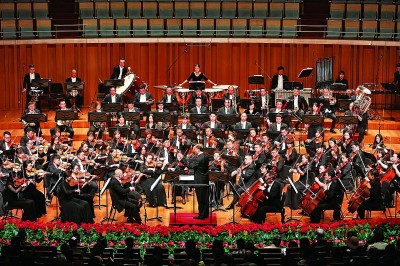 当晚,在聆听了吕其明《红旗颂》、闵慧芬改编作品《洪湖随想曲》之后,现场观众已经领略了这支超大编制管弦乐团的实力。