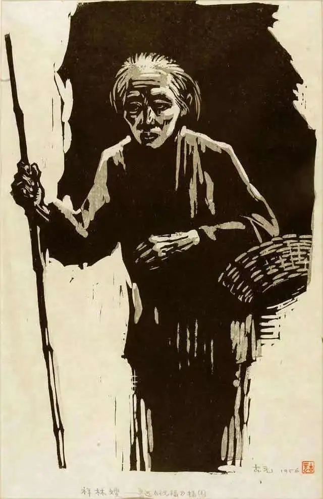 祥林嫂,鲁迅《祝福》插图,古元木刻版画,1956年