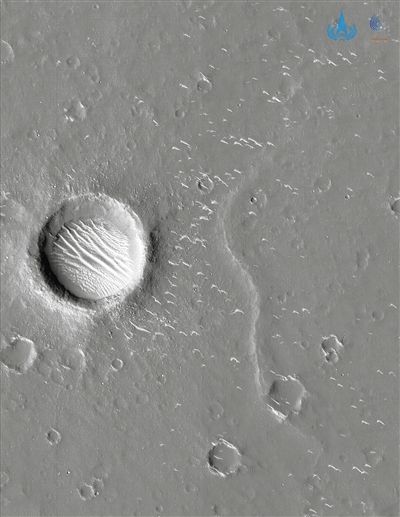 国家航天局公布的天问一号探测器拍摄的高清火星影像图。新华社发(国家航天局供图)