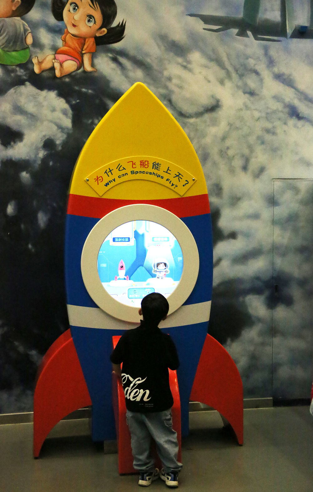 2021年5月19日,小朋友在中国科学技术馆体验科普设备,了解飞船上天过程。新华网发(刘广生 摄于北京)