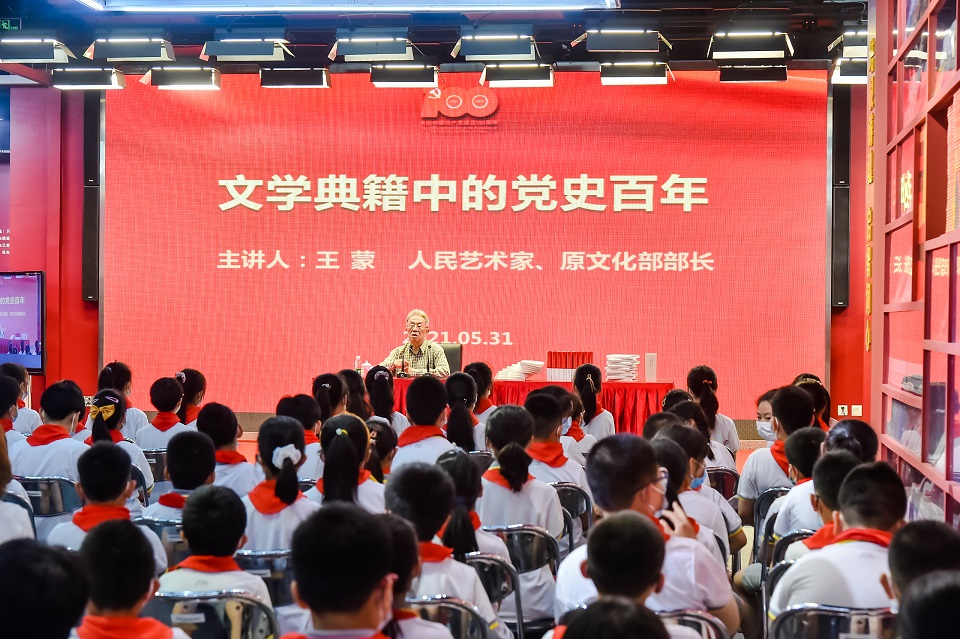 百年的恢弘历史,中国共产党带领中华儿女书写下一幅幅壮丽、壮阔的红色经典画卷,孕育了底蕴丰厚的红色文化,诞生了一大批饱含壮阔革命精神和厚重历史文化内涵的文学作品。此次活动特别邀请到作家、原文化部部长王蒙讲述题为《文学典籍中的党史百年》的党史学习公开课。王蒙在讲座中以文化人,带领观众解析文学作品,回顾中国共产党走过的百年历程。