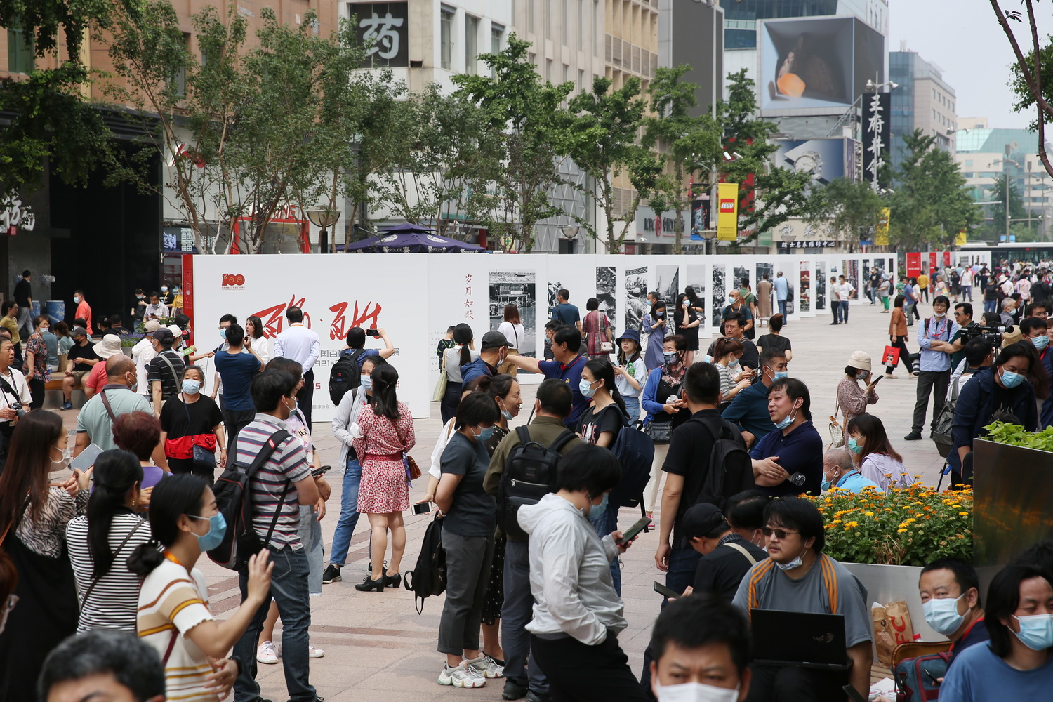6月8日,由中国文联、中国摄协、中共北京市东城区委、北京市东城区人民政府主办的“百年·百姓——中国百姓生活影像大展(1921-2021)”在北京王府井步行商业街开幕。