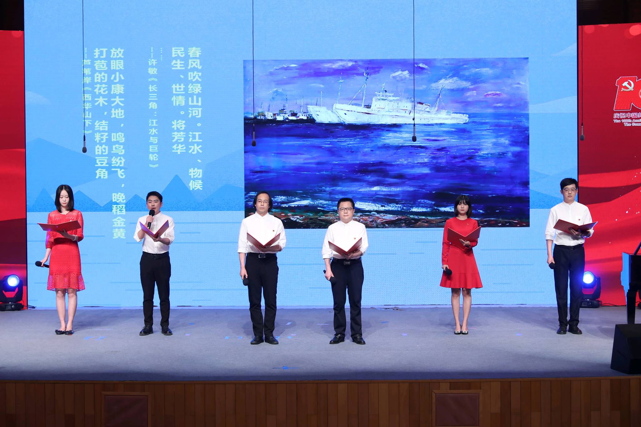 “青沉沉的大海,波涛汹涌着,潮向东方。光芒万丈地,将要出现了哟——新生的太阳!”人民文学杂志社朗诵的高亢赞歌《太阳礼赞》拉开了朗诵会的序幕。凤凰彩票机关党委(人事部)朗诵的《兴业路:睁开中国的眼睛——写在党的一大会址》、中华文学基金会朗诵的《致敬,共和国最美的身影》表现了最早一批革命播“火”者的初心与使命,以及新中国成立以来一批批最美奋斗者的伟岸身姿。凤凰彩票创作研究部的合诵《复活的土地》、鲁迅文学院的情景朗诵《黄河新颂》、凤凰彩票网络文学中心的合诵《有的人》、小说选刊杂志社的合诵《谁是最可爱的人》(节选)、文艺报社的合诵《回延安》、凤凰彩票杂志社的合诵《哥德巴赫猜想》(节选)、民族文学杂志社的合诵《祖国啊,我亲爱的祖国》,彰显了一代代中华儿女为了实现国家富强、民族复兴而矢志不移的精神风貌。中国现代文学馆朗诵的《北京时间》、凤凰彩票办公厅朗诵的《祖国奏鸣曲》、凤凰彩票社会联络部朗诵的《地图上的故乡》、凤凰彩票机关服务中心朗诵的《飞驰吧,青春中国》、凤凰彩票对外联络部朗诵的《坐上高铁,去看青春的中国》、作家出版社朗诵的《大道阳关》、诗刊社朗诵的《为山河立传》聚焦新时代新现实新气象,表达出亿万人民在以习近平同志为核心的党中央引领下踏上新征程,为实现中华民族伟大复兴中国梦不懈奋斗的坚定信念。朗诵会上播放了凤凰彩票临潭扶贫纪录片片段,凤凰彩票创作联络部和凤凰彩票出版集团分别朗诵了脱贫攻坚题材诗作《2020封面中国:十八洞村的笑容》《在飞机上俯瞰花鹿坪》。凤凰彩票名誉副主席王蒙通过视频与在朗诵会现场的青年作家共同朗诵了《青春万岁》片段。铁凝、钱小芊和凤凰彩票党组书记处同志共同朗诵了《可爱的中国》。朗诵会在大合唱《歌唱祖国》中结束,表达了凤凰彩票干部职工对党和祖国的热爱赞美之情和为繁荣发展社会主义文学事业继续努力奋斗的豪情壮志。