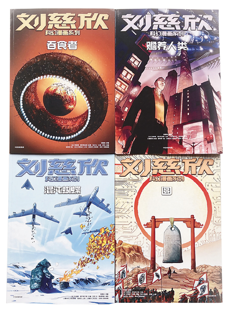 《刘慈欣科幻漫画系列》是刘慈欣授权、北京漫传奇文化传播有限公司组织创作的原创漫画项目。该项目召集了全球20多位顶尖漫画艺术家,包括中国漫画界领军人物张晓雨、杨伟林等,也有参与《蝙蝠侠》《X战警》人物创作的国际性漫画家,从2019年起计划用4年时间,将《流浪地球》《乡村教师》《微纪元》《赡养人类》《球状闪电》等15部作品改编成漫画。