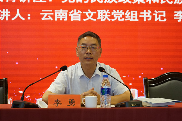 李勇在致辞中表示,党的十八大以来,习近平总书记围绕民族工作和民族团结发表了一系列重要讲话,深刻回答了搞好民族工作和促进民族团结在新的历史条件下面临的一系列重大理论和现实问题,提出了新时代加强民族工作的新理念和新思路,内涵丰富,思想深邃,为引领全国各族人民发展民族团结进步事业提供了根本遵循。