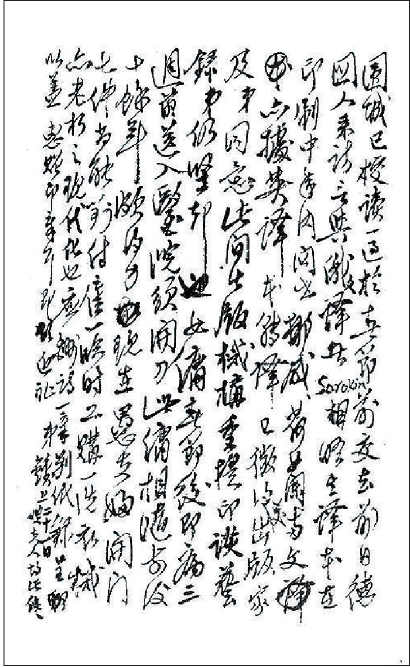 …… 《围城》俄译者Sorokin君去冬来访,云正译《人兽鬼》。此书亦有西德Charlotte Dunsing博士译本。 《围城》法译出Sylvie Servan Schreiber女士(法国驻尼泊尔大使馆文化参赞)手,巴黎出版家已来函与弟订约矣。