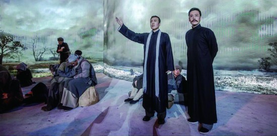 人民的选择,历史的必然。随着一场绚丽的烟花绽放,大型情景史诗《伟大征程》拉开了序章的帷幕。戏剧与舞蹈作品《破晓》再现了近代以后中华民族饱经磨难,无数仁人志士前赴后继寻找救国救民真理的过程。在观演现场,烟花散去之后的硝烟味道,伴随着战火连绵的影像资料,将人们的思绪瞬间带入了曾经积贫积弱、满目疮痍的旧中国,这是一段令人痛心疾首的过往,也是一段觉醒的年代。面对国家的屈辱、人民的苦难,正是早期中国共产党人救亡图存,最终选择了马克思主义道路。