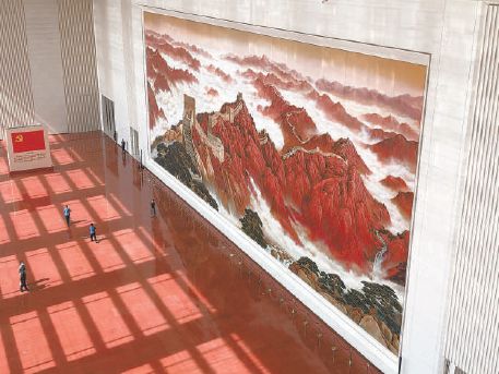 超大漆壁画《长城颂》亮相党史馆 画作总面积600平方米 100块漆板寓意建党百年