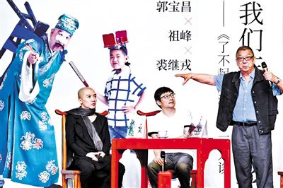 郭宝昌带着自己刚刚由三联书店出版的新书《了不起的游戏:京剧究竟好在哪儿》登台“说戏”;祖峰、裘继戎两位名角嘉宾,则以自己的亲身经历,和“宝爷”郭宝昌一起探讨京剧艺术的无尽魅力。
