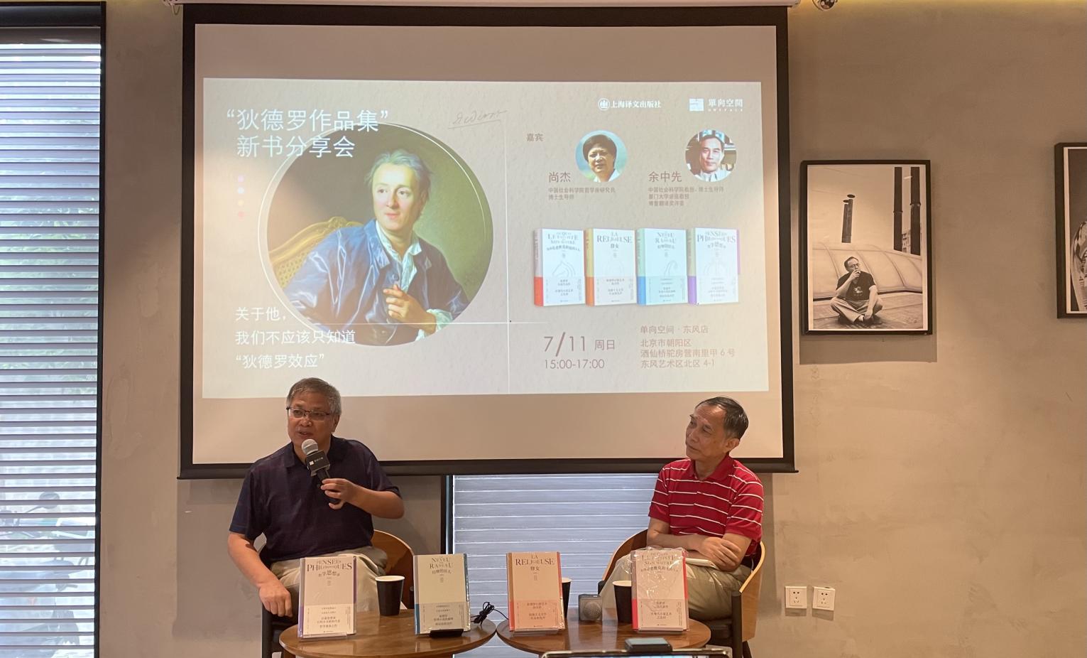 7月11日下午,上海译文出版社在北京单向空间东风店举办以“关于狄德罗,凤凰彩票不应该只知道狄德罗效应”为主题的新书分享会,中国社会科学院哲学所研究员尚杰和法语文学翻译家余中先共同讲述狄德罗在文学和思想等方面的贡献。分享会由上海译文出版社狄德罗作品集策划编辑李月敏主持。