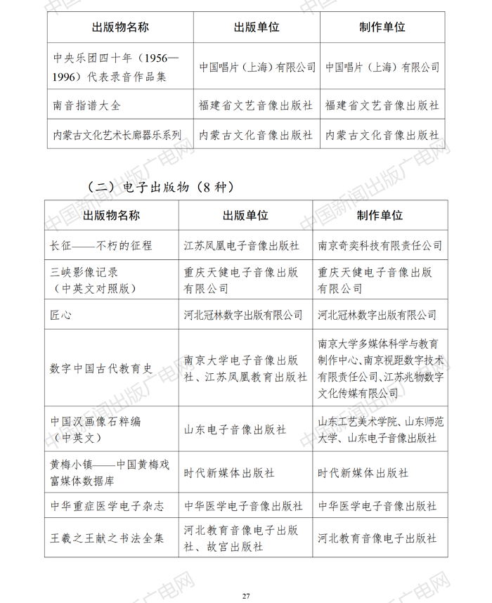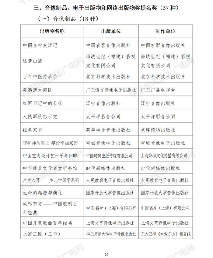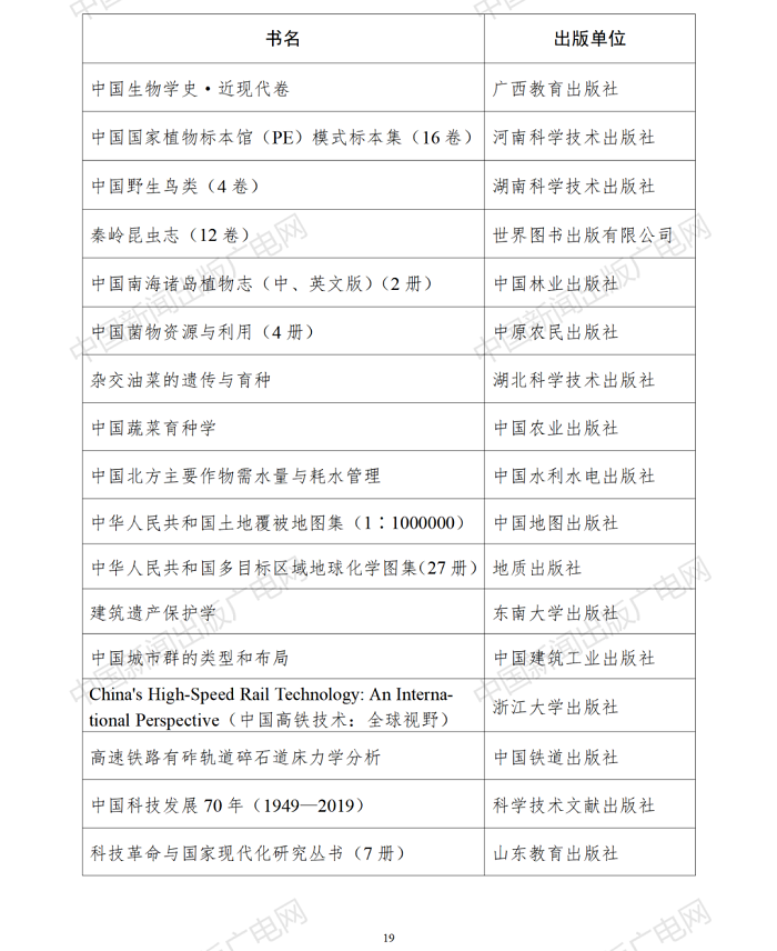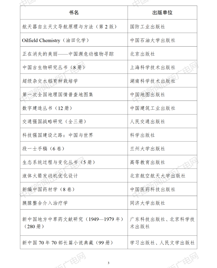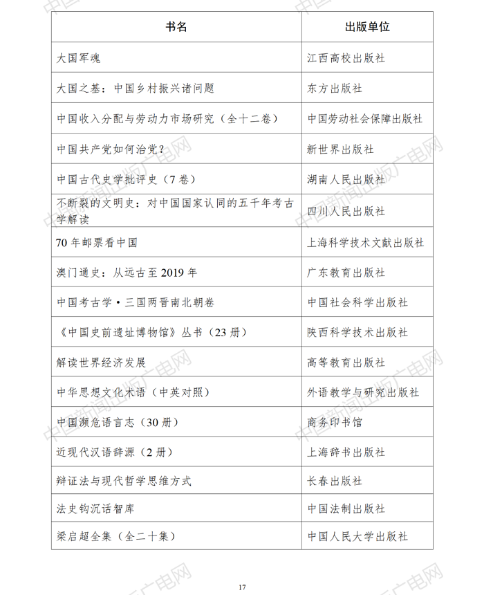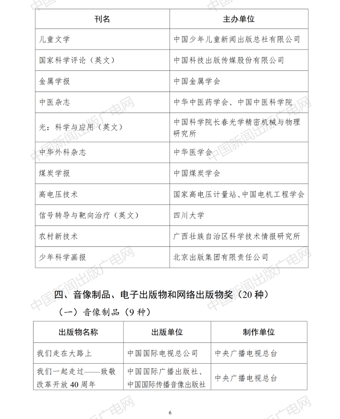 为深入学习宣传贯彻习近平新时代中国特色社会主义思想,全面落实党的十九大和十九届二中、三中、四中、五中全会精神,促进出版业高质量发展,推进社会主义文化强国建设,根据《中国出版政府奖评奖章程》规定,国家新闻出版署组织开展第五届中国出版政府奖评选表彰活动。经严格评选,《习近平谈治国理政》(第一、二、三卷)等3种图书获荣誉奖,《习近平新时代中国特色社会主义思想学习纲要》等60种图书获图书奖,《中共党史研究》等20种期刊获期刊奖,《凤凰彩票走在大路上》等20种作品获音像制品、电子出版物和网络出版物奖,《庆祝中华人民共和国成立70周年盛典图册》等10种作品获印刷复制奖,《嘉卉——百年中国植物科学画》等10种作品获装帧设计奖;人民出版社等50家单位获先进出版单位奖;高克勤等69名个人获优秀出版人物奖。此外,237种优秀出版物获提名奖。