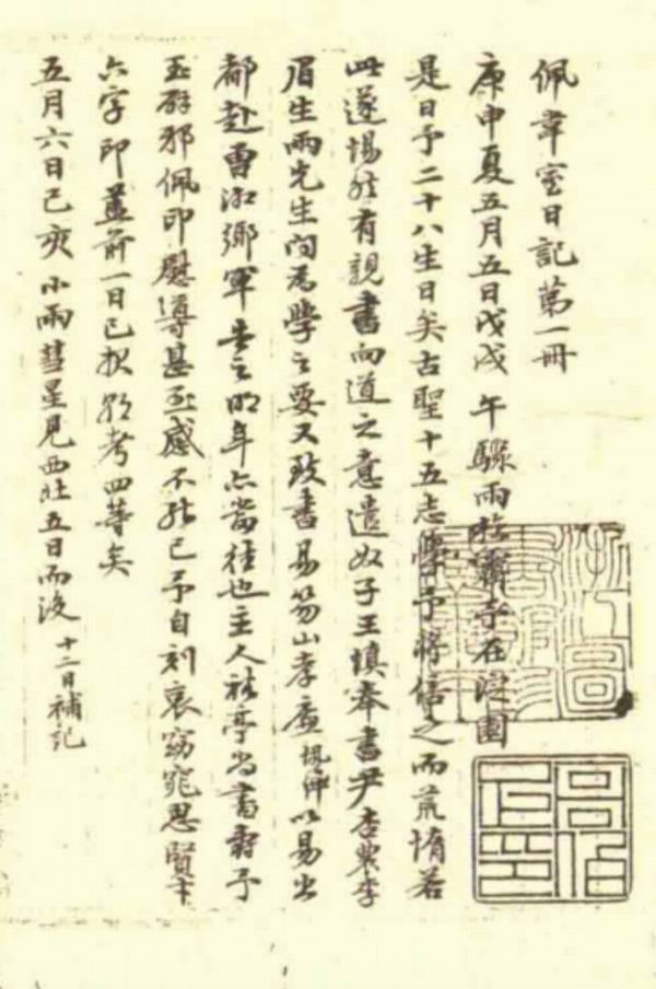 嗜好印章的高心夔在生命的许多重要时刻,都会用到印章。他的日记始于咸丰庚申(1860)五月五日,这一天,高心夔踌躇满志,知耻后勇,开始他的“佩韦室日记”之旅: