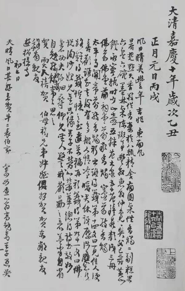 例如在浙江台州人黄秉义(1874-1920后)日记中,就清晰记载了印章的使用规则。黄秉义丙午(1906)正月初二日日记记载:“余自本月初一日起,与友人来往信件名字之‘顿首’草字中盖一‘侣’字篆字小戳一方,与长辈来往信件名字之下书‘谨肃’,或‘叩首’字上盖一‘秉义谨肃’篆字图书一方,以作记号。……另有官名及别字号等及一切图章盖用余书篆字或行书用,均不得为凭也。”可见黄秉义使用印章十分谨慎,仅仅书信中的印章,就因收信人的辈分、信件的重要程度等,而使用不同印章;即便是信套,黄秉义也用不同印章加以区分。在私人信件之外,对于借贷凭据、收条等,黄秉义又使用另外一套用印规则,以此作为凭据。