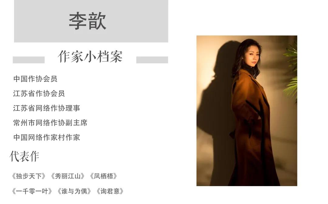 谈起下一步的创作计划,李歆透露,自己正在写以五代为背景的历史小说《非常道》,是男主群像类的,“之后还是想写一些轻松点的,毕竟写乱世背景的历史文太烧脑了。”