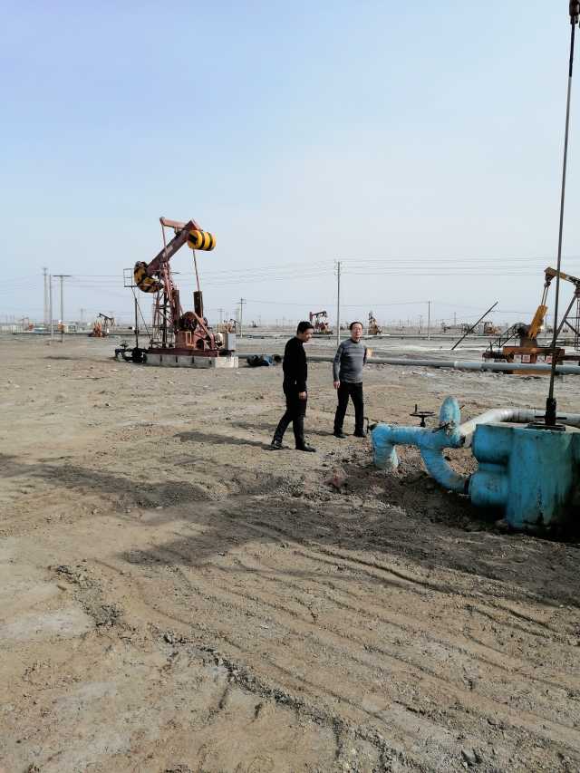 两位作家在新疆克拉玛依油田采访