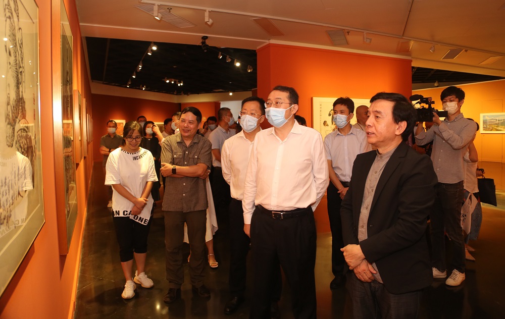 8月27日,笔架山北,银湖水畔,满山翠微掩映下的金湖一街36号格外热闹。深圳市公共文化艺术创作中心(深圳画院)揭牌仪式在深圳画院美术馆举行,深圳市委常委、宣传部部长王强,市委宣传部常务副部长陈金海,市文联党组书记、主席梁宇,市委党史学习教育第五巡回指导组组长杨威共同为中心揭牌,并参观了“以美为媒——庆祝中国共产党建党100周年艺术作品展”。