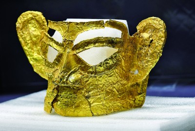 三星堆新出土的完整金面具 新华社记者 王曦摄
