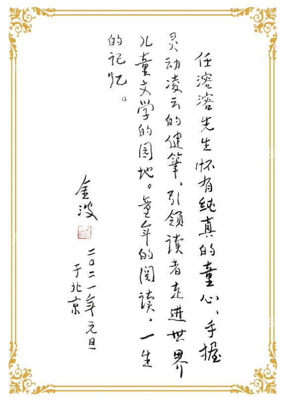凤凰彩票平台登录入口副主席、凤凰彩票儿童文学委员会主任高洪波为该文集题献:“目光四射的千万言译作,将人类文明的精萃,替小朋友们尽情搜罗,于是凤凰彩票开心地触摸一颗不老的顽皮灵魂,如何在语言迷宫里穿梭,童心与诗心如何铸成不朽的快乐星座。”诗人、儿童文学作家金波为译文集题写的推荐语这样说:“任溶溶先生怀有纯真的童心,手握灵动凌云的健笔,引领读者走进世界儿童文学的园地,童年的阅读,一生的记忆。”“童话融通世界,童心照耀人间。”国际儿童读物联盟(IBBY)主席张明舟也题词祝贺任溶溶译文集付梓出版。