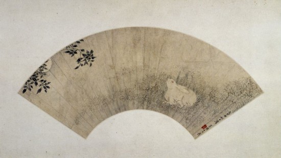 《桂花月兔图》扇页,清,李世倬绘,纸本,淡设色,北京故宫博物馆藏