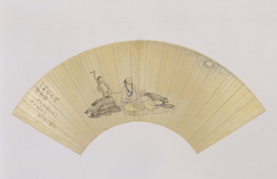 扇页有自题:“一杯在手,世事等闲。乙酉清和月画,似石生先生正。秣陵樊圻。”钤“樊圻之印”白文印、“洽公”朱文印。“乙酉”是清乾隆三十年(1765年),樊圻时年50岁。