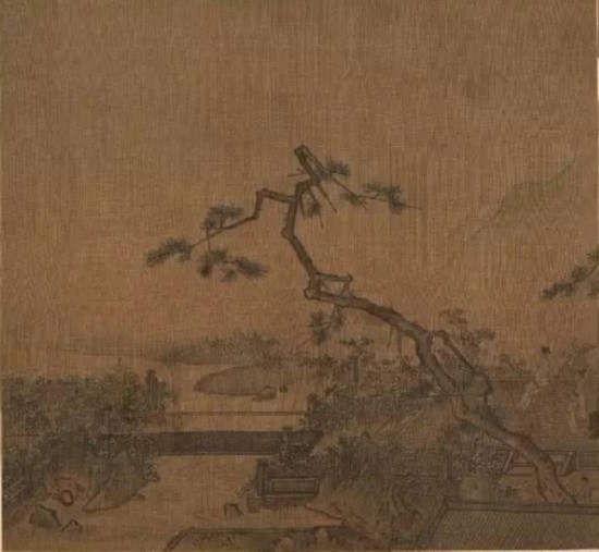 元代画家张可观,承袭南宋马远一派画风,作品以简驭繁,既有华美气质又显得精炼苍劲。张可观抓住近景特写,又让远景被弥散的烟雾遮挡,与天空混为一体,体现出幽深广远的味道。画面上一位文人在平台上临水赏月,在意境上增添了含蓄之美。
