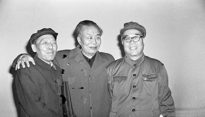 田间(左)、艾青(中)、魏巍合影。资料图片
