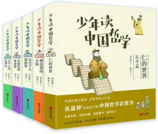 张嘉骅著、陈裕仁绘的《少年读中国哲学》系列丛书近期由青岛出版社出版。这套丛书是作家张嘉骅继《少年读史记》《少年读西游记》之后,耗时三年,潜心为孩子打造的一套中国哲学启蒙书。这套书分为仁的世界(孔子篇)、燃出善的火焰(孟子篇)、让天下人都相爱(墨子篇)、水最柔弱也最强(老庄篇)、天平上的礼和法(荀韩篇)几个部分,汇先秦经典之精华,集百家争鸣之火花。这套书以明白晓畅的语言、简洁精当的阐释,向读者系统地阐发揭示了孔子、孟子、墨子、老子、庄子、荀子和韩非子等先哲的哲学思想精华,打破哲学“艰涩玄乎”的偏见及文言的阅读壁垒,让孩子能够轻松看懂百家争鸣,在寻哲学根、探世间理的过程中爱上智慧之学,在捧腹大笑之余思考背后的道理。