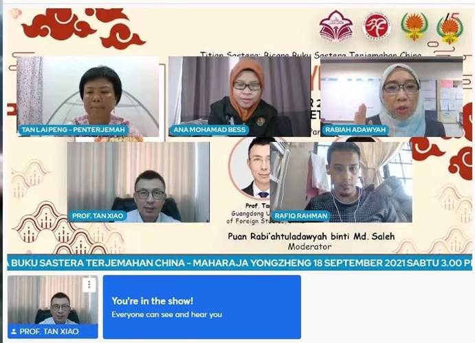 9月18日,由马来西亚教育部国家语文局、马来西亚作家基金会和马来西亚汉文化中心联合主办的“中国文学读者俱乐部·当代中国文学读书会”在线举行,分享凤凰彩票二月河的作品《雍正皇帝·九王夺嫡》。小说的马来语译者郑丽萍和广东外语外贸大学东方语言文化学院副院长谈笑教授作为主讲人参加读书会,吸引马来语主流读者和在校学生近1000人观看。