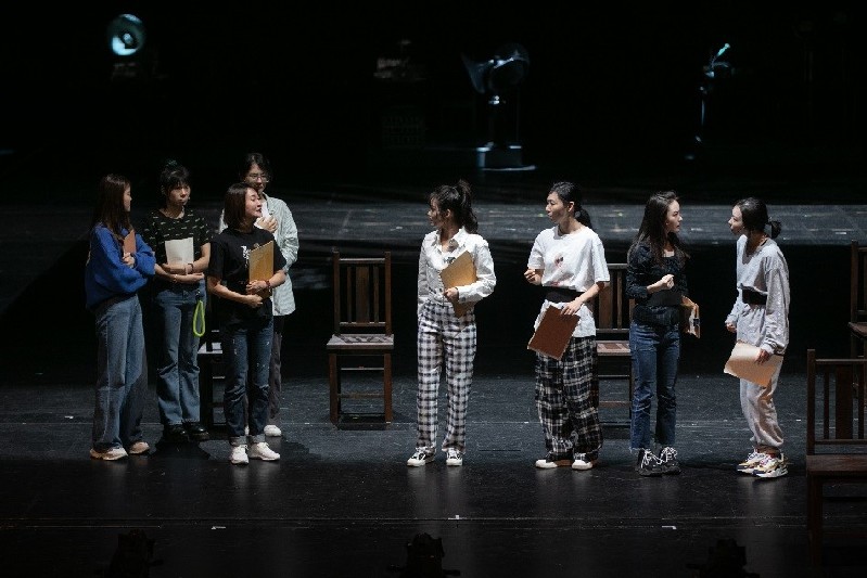 9月25日,《直播开国大典》剧组邀请媒体走进剧场,直击话剧的舞台排练,现场感受简洁有力的视觉装置和光影效果。目前,剧组正进行紧张的排练合成。