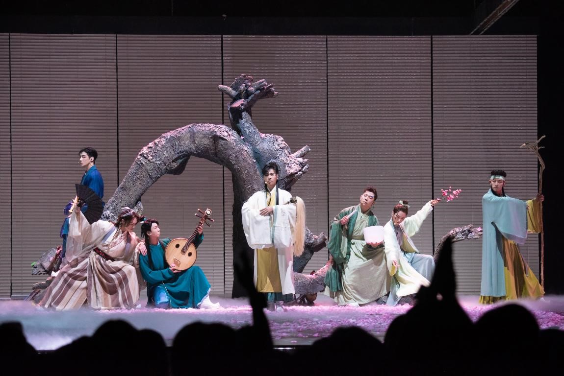此次,在《舍离断》舞台创作过程中,赵梁主动将自身的艺术理念融合其中,提出《舍离断》是一首富有禅意的国风歌曲,所以在舞台设计上希望更艺术化、剧场化。公演当天,张晋阵营的《舍离断》舞台全员古装亮相,衣袂翩跹,仙气萦绕。跳着中国舞、唱着昆曲的李响率先登场,随后吹着笛子的胡海泉、弹着中阮的白举纲等人悉数亮相。在竹帘之中,奇石山水、昆曲、中国舞、中国乐器等诸多凸显东方美学的元素逐一呈现,将歌曲中“自观”的禅意通过具象化的演绎送达观众面前,出入自然、出入生活的洒脱得以展现,如舞蹈家赵梁所说:“这便是中国人一直在追寻的山水精神”。