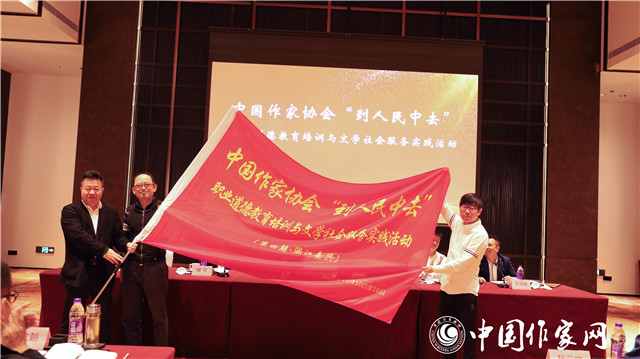 开班仪式上,还举行了授旗仪式,邱华栋向作家代表分别授旗。
