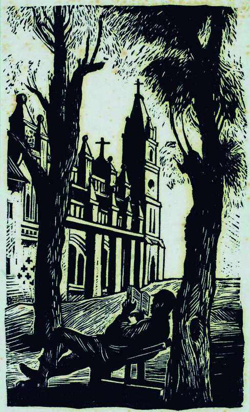延安鲁艺校景(黑白木刻,1939年) 古 元 作