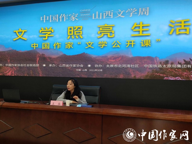 在北河湾社区,王华为社区居民和中国铁路太原局集团职工讲授题为“把故事当人生去经历”的文学公开课,阐述了自己的文学创作理念,同时对在场文学爱好者的提问及创作中的困惑做出了精辟的解答与释疑。