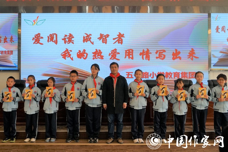薛涛在五一路小学为全校师生讲授以“童年的读与写:一对彩色的翅膀”为主题的文学公开课。活动现场,他与在校学生分享自己对读与写的看法,以生动有趣的事例讲述个人写作历程,并鼓励孩子们爱上阅读、爱上写作。