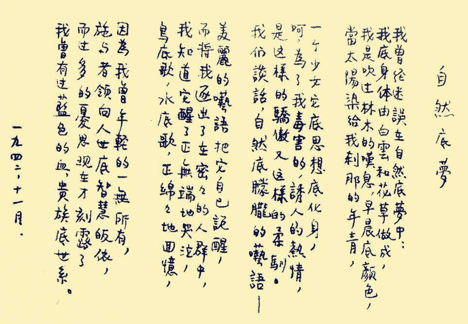 穆旦诗歌《自然底梦》手稿