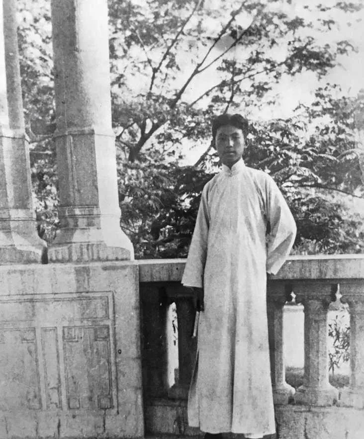 十七岁的穆旦,摄于天津法国花园亭