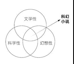 图 1 科幻小说与科学性、文学性、幻想性的关系