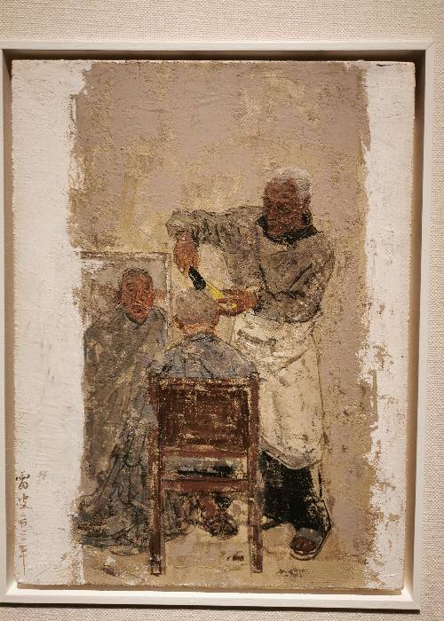 打渔的,理发的,练摊的,卖肉的,旁观的,无事闲聊的……繁华的世间,他为何选择了如此的角度呢?面对升任画院院长的良机,他为何坚辞而去,跑到家乡广西隐居三年,在这些无名小卒面前驻足流连呢?看惯了雅致流利,雷波的油画给人“跳出来”的“不一样”的感觉。