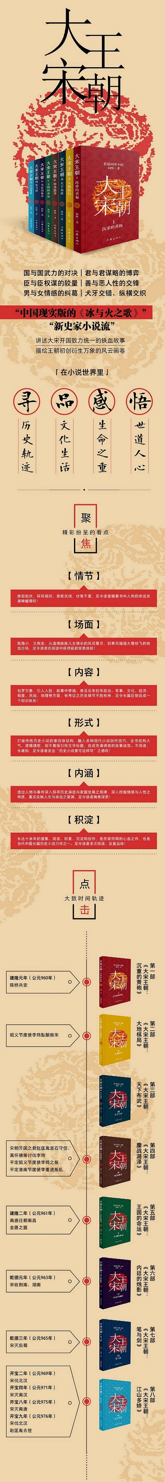 《大宋王朝》自第一部出版以来,被读者称为开创了历史小说创作的“新史家小说流”,因为小说文本细节背后有许多坚实的历史考证为支撑,作品由此充满了可以慢慢品味咀嚼的历史细节,从某种程度上说,小说本身也由此构成了一个复杂的知识体系。一些读者在阅读的过程中(指先期出版的几部),因这部小说的文本而对其背后的历史记载产生了浓厚的兴趣。而这些历史的资料、文献对于我的创作,也确实起到了重要的作用,如《宋史》《续资治通鉴长编》《南唐书》《十国春秋》《文献通考》《宋会要辑稿》《皇朝编年纲目备要》《宋史纪事本末》《宋朝诸臣奏议》《太平寰宇记》《元丰九域志》《宋朝事实》《五代会要》《唐六典》《朝野类要》《武经总要前集》《东京梦华录》《历代名臣奏议》《全上古三代秦汉三国六朝文》《宋文鉴》《宋史全文》《宋大诏令集》《宋元方志丛刊》《宋史资料萃编》《宋元笔记小说大观》《全宋笔记》,等等。