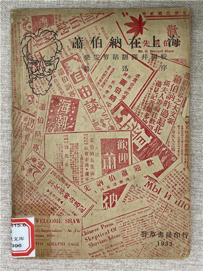 《萧伯纳在上海》的封面上铺天盖地是上海各家报纸刊刊登萧伯纳来上海的报道,剪切拼凑又互相遮盖,土红色相互穿插,烘托气氛且很有时代感。黑色的萧伯纳勾线头像位于下方,既能第一时间勾起人们对萧伯纳身份背景的好奇心,又传达了先生对当时社会跟风状态和政府控制舆论的强烈不满。即使拿到今天来看,此种设计也是相当不错的。
