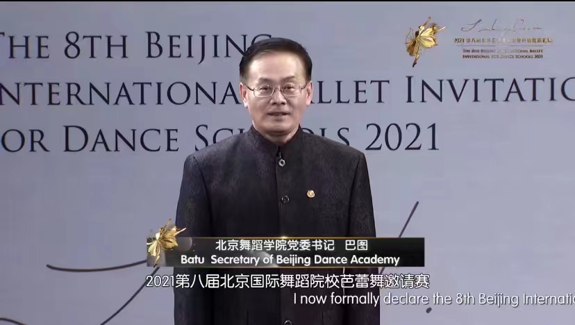 在文化和旅游部、北京市委市政府关心和北京市教育委员会的大力支持下,由北京舞蹈学院主办的2021第八届北京国际舞蹈院校芭蕾舞邀请赛于12月3日晚线上开幕。大赛组委会主席、北京舞蹈学院党委书记巴图宣布2021北京国际舞蹈院校芭蕾舞邀请赛开幕。大赛组委会主席、北京舞蹈学院院长郭磊致开幕词。