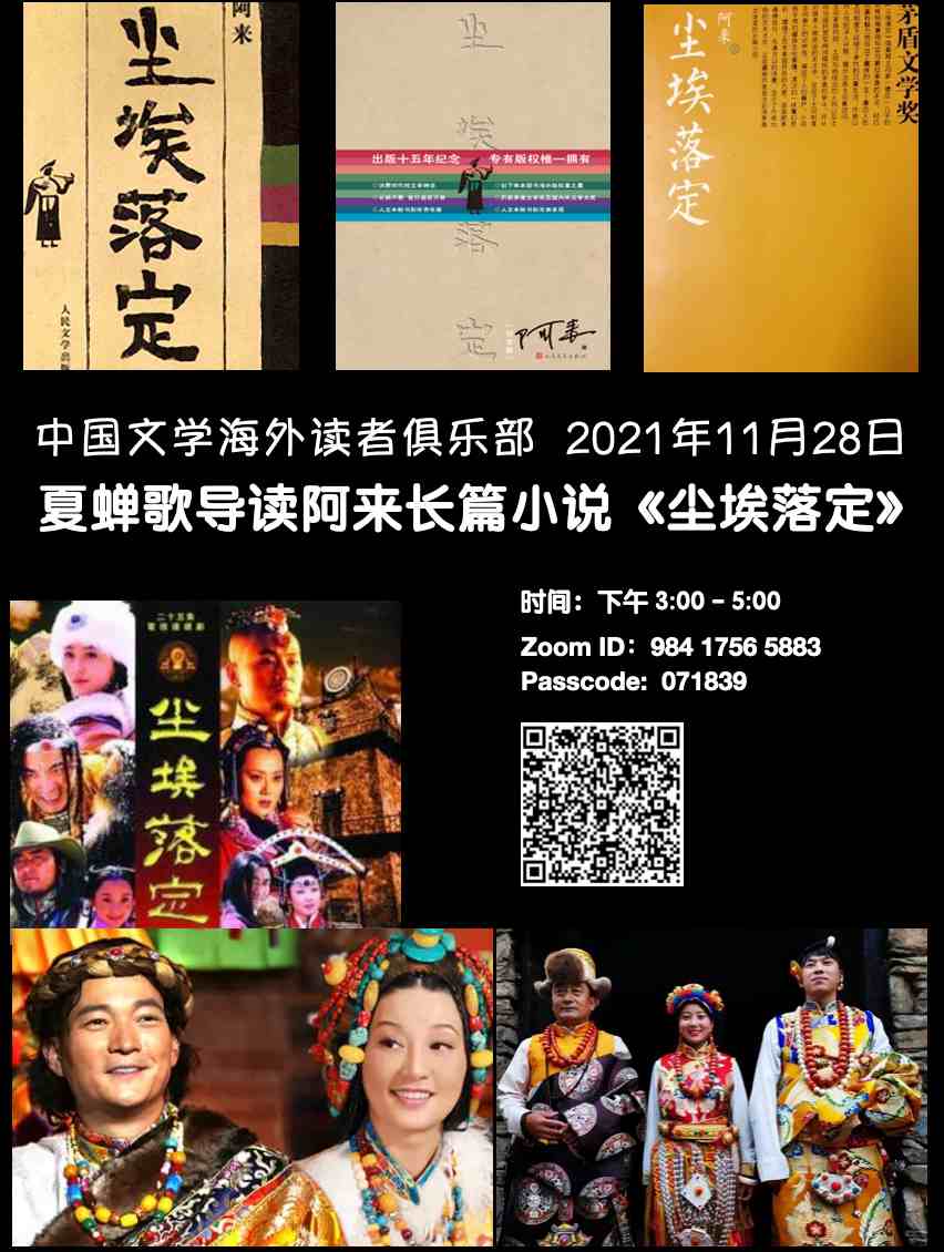 11月28日,新加坡中国文学读者俱乐部组织读者以在线形式阅读了中国藏族作家阿来的长篇小说《尘埃落定》。《尘埃落定》曾获得第五届茅盾文学奖,并于2019年入选“中国70年70部长篇小说典藏”。